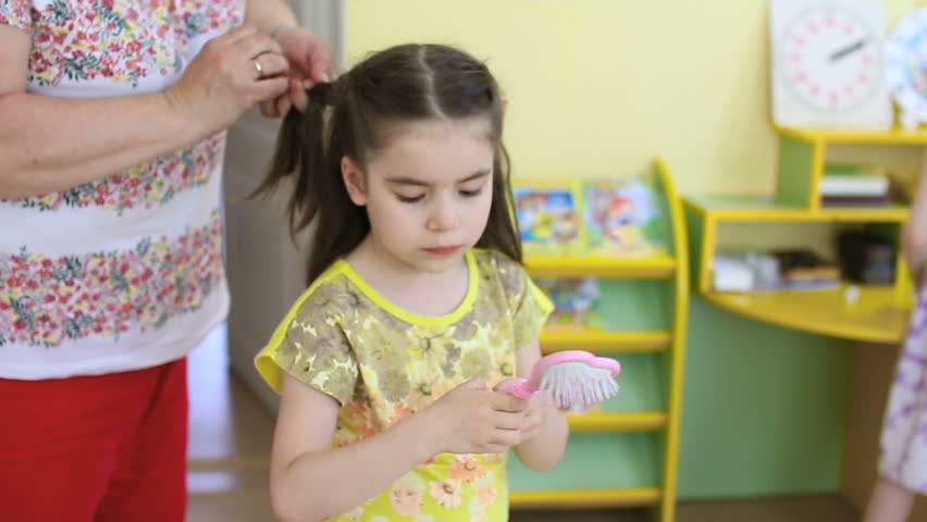 Childrens Hairstyle Hairdresser Makes Hairstyle Stock Footage Video